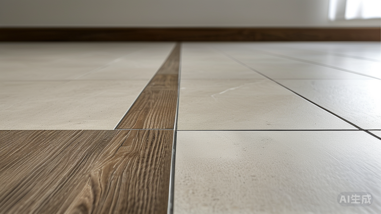 四、案例分享某高端别墅项目中,业主希望客厅区域能够展现出开放通透的感觉同时又不失温馨氛围。设计师采用了大面积浅灰色大理石纹理抛光砖搭配局部深胡桃木色实木地板的组合方式,并在二者相接的地方巧妙地嵌入了一条细长的黑钛金线条作为点缀。这条精致的金属线条既起到了划分功能分区的作用,又成功地掩盖住了微小的高度差别,使得整个地面看起来连贯一致毫无违和感。而在通往卧室通道处的羊毛地毯边缘,则是用了一圈同色系的绒毛包围圈来收尾,既美观又实用。 通过对不同类型收口条的正确选用以及对无高差原则的有效实施,我们可以创造出既安全又美观的理想居住环境。无论是商业场所还是私人住宅,合理的地面材料混接工艺都是提升品质的关键所在。 |