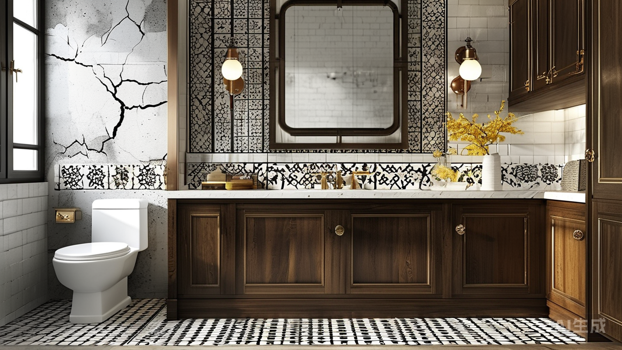 复古风是小规格瓷砖的经典舞台之一。这种风格追求历史的厚重感与文化的沉淀,而小砖恰似时光的碎片,能精准复刻老式建筑的细节。比如马赛克形式的彩色玻璃小瓷砖,或是做旧处理的陶质小花砖,常被用于拼贴出复杂的图案,像欧式古典纹样、中式传统吉祥符号等。在卫生间干区,地面铺陈着黑白相间的几何图形小花砖,搭配木质洗漱柜与黄铜五金件,瞬间营造出上世纪二三十年代的老上海风情;厨房墙面则可采用带有裂纹效果的小青砖,粗糙的表面诉说着岁月的故事,与实木橱柜形成粗犷又温暖的对比,让烹饪空间充满怀旧气息。这些小巧的瓷砖通过对色彩、纹理及排列方式的巧妙把控,将过往时代的印记生动再现,成为复古风格的灵魂载体。