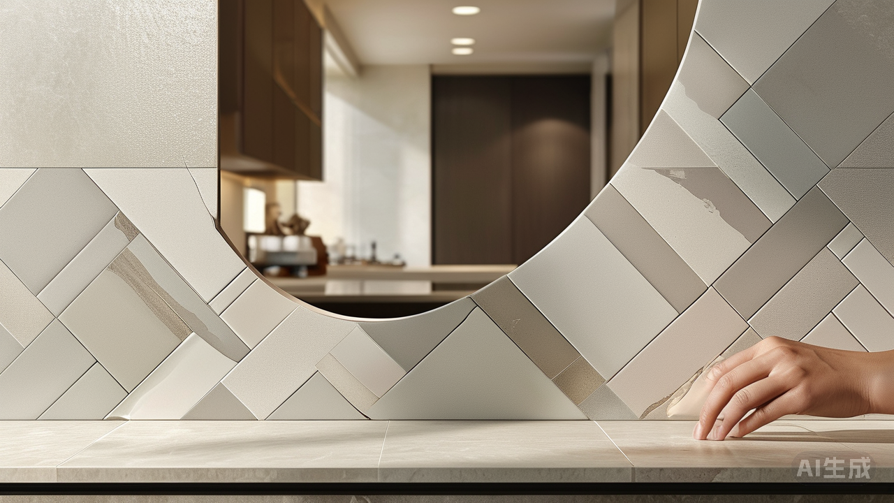 相较于机械化生产的标准化方案,传统的倒角碰边工艺则展现出手工打磨的温度与质感。经验丰富的师傅运用专用工具将相邻瓷砖边缘精心斜切45度,拼接后自然形成圆润过渡带。这种做法完全消除了尖锐凸起,让触摸变得柔和温润,尤其在厨房操作区或浴室出入口等高频接触区域体现出显著优势。其浑然天成的衔接效果使砖缝几近隐形,视觉上拓展了空间延伸感。但这种追求完美的背后是高昂的时间成本——每片瓷砖都需要单独测量、切割、试拼,稍有误差便前功尽弃。而且对基层平整度有着近乎苛刻的要求,否则会出现错位空鼓等问题。