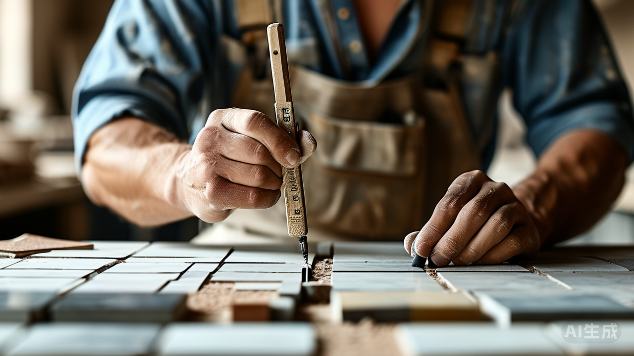 采用专用锯齿刮刀,在基层上均匀涂布一层薄薄的瓷砖胶,厚度一般控制在3-6毫米之间。关键在于“薄”,既保证了足够的支撑力,又减少了材料用量,同时避免了因厚度过大导致的收缩开裂风险。刮涂过程中要保持力度一致,确保每个角落都被覆盖到位。 5. 铺贴瓷砖:精准对齐快速按压 将预选好的瓷砖轻轻放置于已涂好胶水的位置上,根据之前弹设的控制线调整其位置,确保缝隙均匀、边缘平行。随后迅速用橡皮锤轻敲砖面,促使瓷砖与基层紧密贴合,排出多余空气泡,实现牢固固定。此环节要求动作迅速准确,以防胶水初凝影响调整机会。