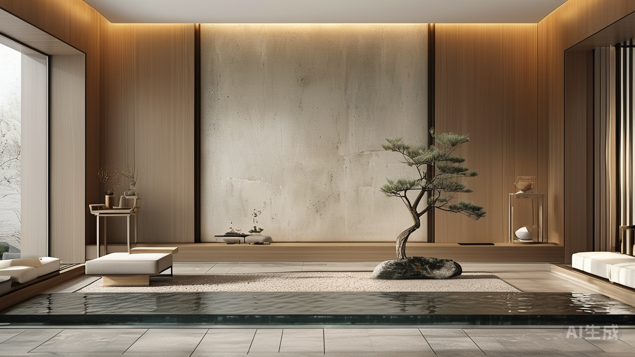 材质表面宜含蓄。哑光或柔光釉面最能诠释禅的沉静与内省。它们温润地接纳光线,没有咄咄逼人的反射,只留下柔和漫射的光晕,让空间笼罩在一种宁谧的氛围中。亮面瓷砖过于喧嚣,与禅境的克制背道而驰。
