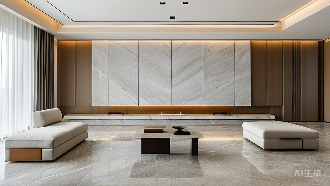 色彩的浓淡亦是学问。轻奢所求从来非是浓墨重彩的炫耀。若偏爱大理石中灰、白、米、黑等基础调性,大可选其中一种做主基调,再令其余色域静静烘托。铺陈于地面或大面墙体,整体便如一幅晕染均匀的素绢,自生端庄。若想引入咖色、淡金等暖调纹理,则更须克制,仅作局部点缀,如同华服上的一粒琥珀纽扣,在低调中闪烁幽光——过之,则失其贵雅。