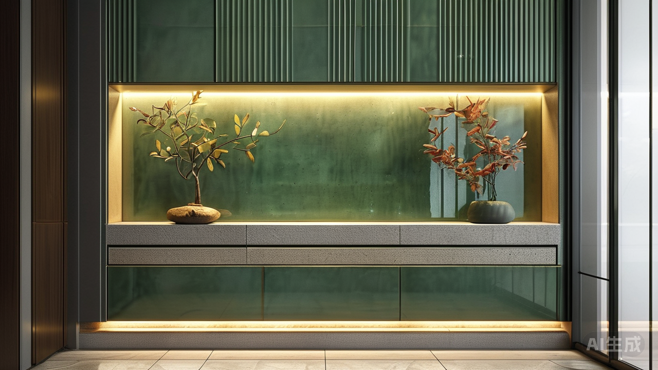 小规格花砖如何运用才能画龙点睛?玄关、厨房背景墙、卫生间点睛之笔设计案例。方寸之间,自有乾坤。小规格花砖,并非空间的铺陈主角,却如精妙首饰,在恰当位置一点,便能唤醒沉寂的角落,赋予空间灵魂。 玄关是家的序章,往往狭促却需第一眼惊艳。不妨让一方小规格花砖,成为此处的灵韵之眼。无需满墙喧嚣,仅在壁龛内侧或换鞋凳后的窄条背景,密铺几片釉色温润的花砖。墨绿釉面在顶灯下漾开深邃光泽,金线勾勒的叶片暗纹随光影流转,瞬间凝成视线落点。这小小的精致,便足以驱散入门时的平淡,无声预告着内里的品位。