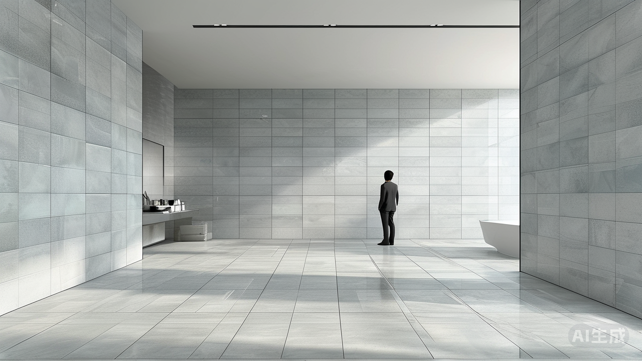 小空间瓷砖搭配黄金法则,显大、亮堂、不压抑在小空间里,瓷砖的搭配是决定视觉感受的关键。遵循“显大、亮堂、不压抑”的黄金法则,能让卫生间或厨房瞬间告别逼仄感。 首选浅色系,奠定明亮基调 浅色瓷砖对光线的反射率最高,是扩大空间感的基础。墙面和地面首选纯白色、米白色、浅灰色或奶油色。这些颜色如同画布,能最大程度地提升空间亮度,营造出开阔、洁净的视觉感受,从根源上避免压抑。 巧用规格,延伸空间维度
