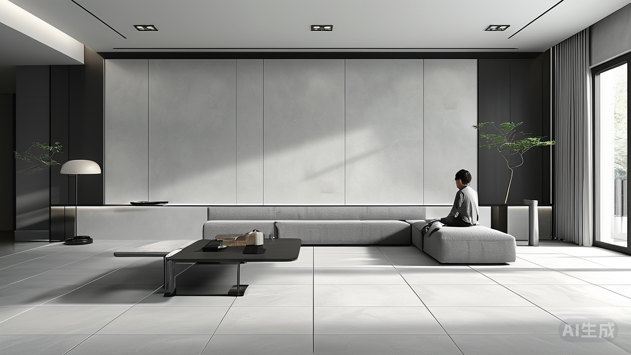 正确的做法是先排版,后铺贴。在动工前,一定要让施工方用红外线水平仪在现场弹出纵横基准线,找出整个空间最核心、最长的轴线。通常,会以客厅的主视线方向作为基准,比如沙发背景墙或电视背景墙的中心线。从这个中心轴向两边铺开,这样即使边角有些许不齐,也能将误差均匀地分摊到两侧的家具或踢脚线等不显眼的位置,确保在视觉主区域看到的是完整、对称的砖缝,最大程度地保证整体美观。 解决了“从哪开始”的问题,接下来就要攻克“如何衔接”的难关,也就是对缝。通铺的精髓就在于“通”,而“通”的视觉体现就是砖缝的连贯性。尤其是当你选择的是大规格瓷砖或木纹砖时,对缝的要求就更高。