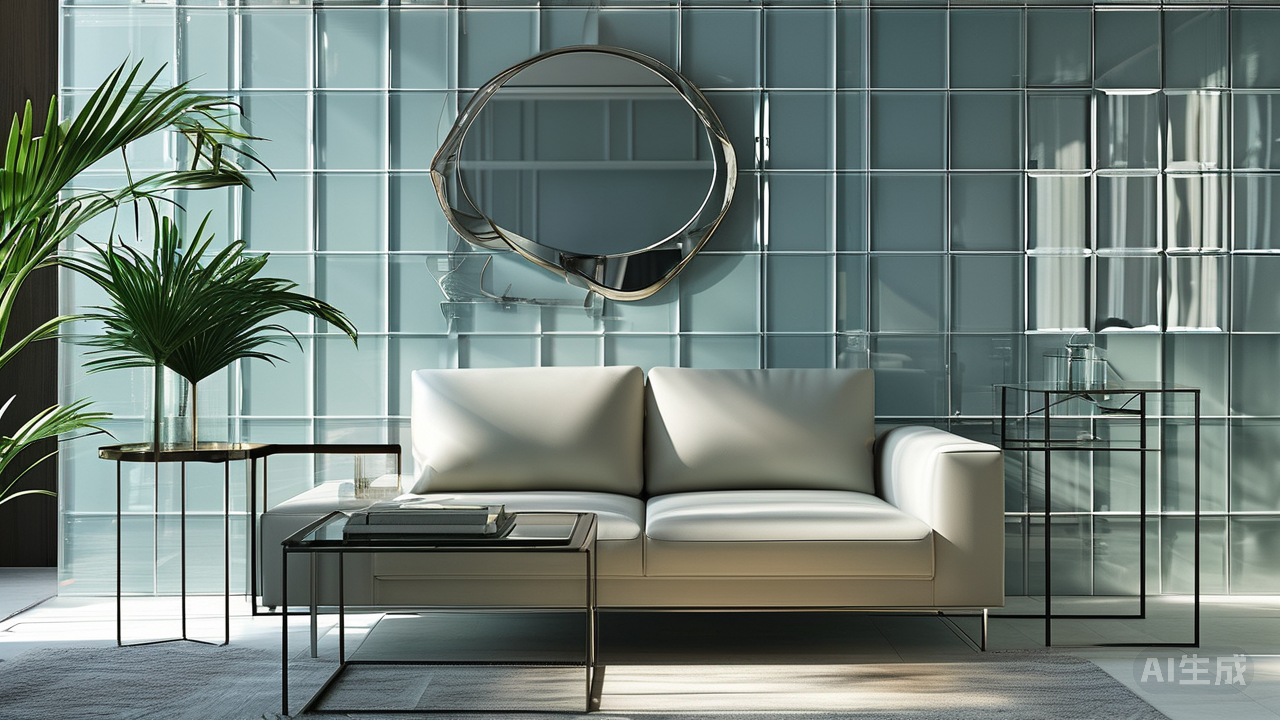 四、混搭艺术:平衡质感与风格成功的搭配离不开对不同材质特性的深刻理解和灵活运用。亮光面瓷砖的冷硬与金属的温暖光泽形成对比,玻璃的清澈与镜面的深邃相互映衬,通过这样的混搭,可以让空间充满层次感和趣味性。不妨尝试在客厅铺设一块大型亮光面瓷砖地面,搭配一套流线型的金属框架沙发,再以一面复古边框的大镜子作为墙面装饰,既展现了现代感,又不失复古韵味。